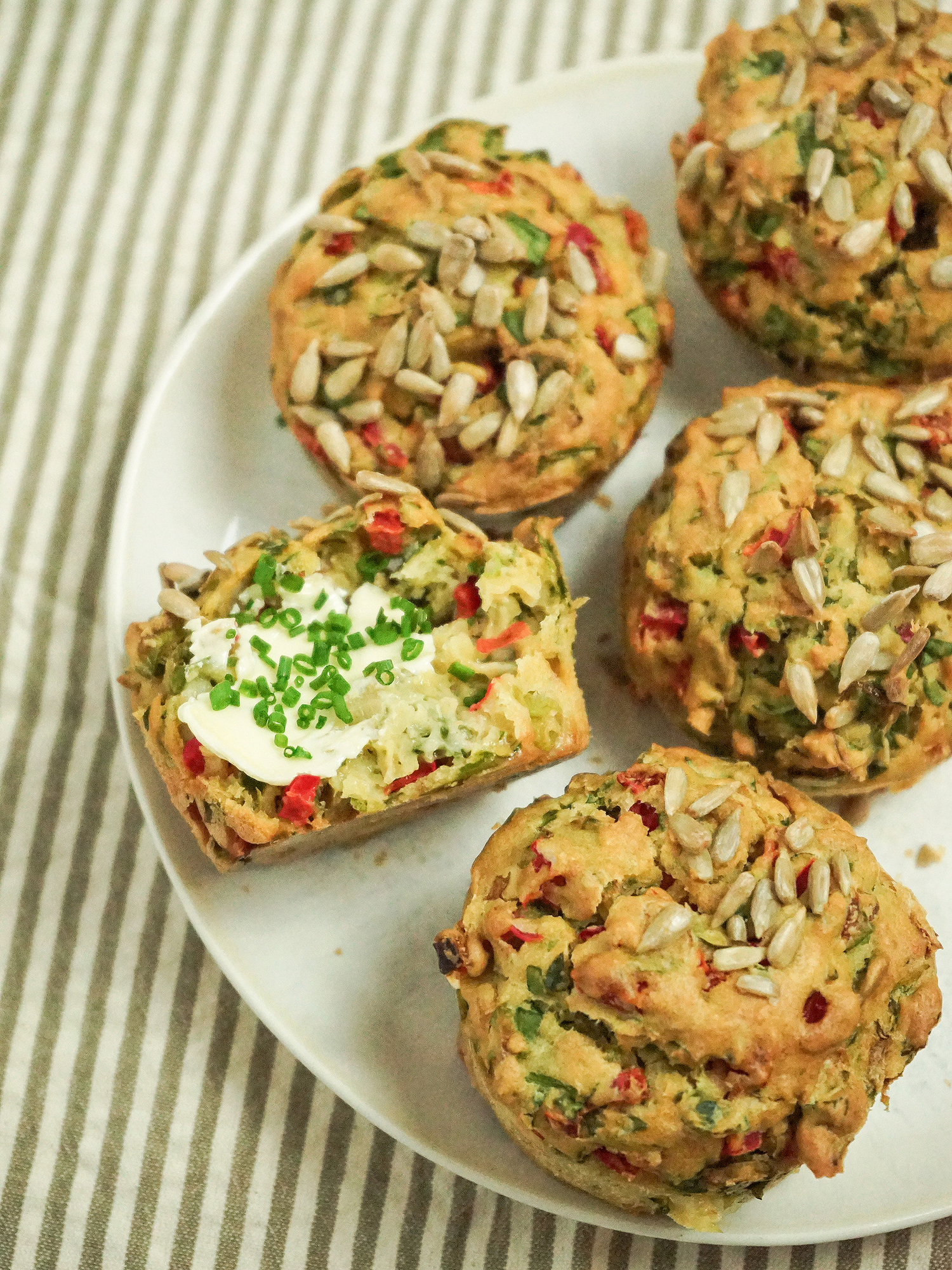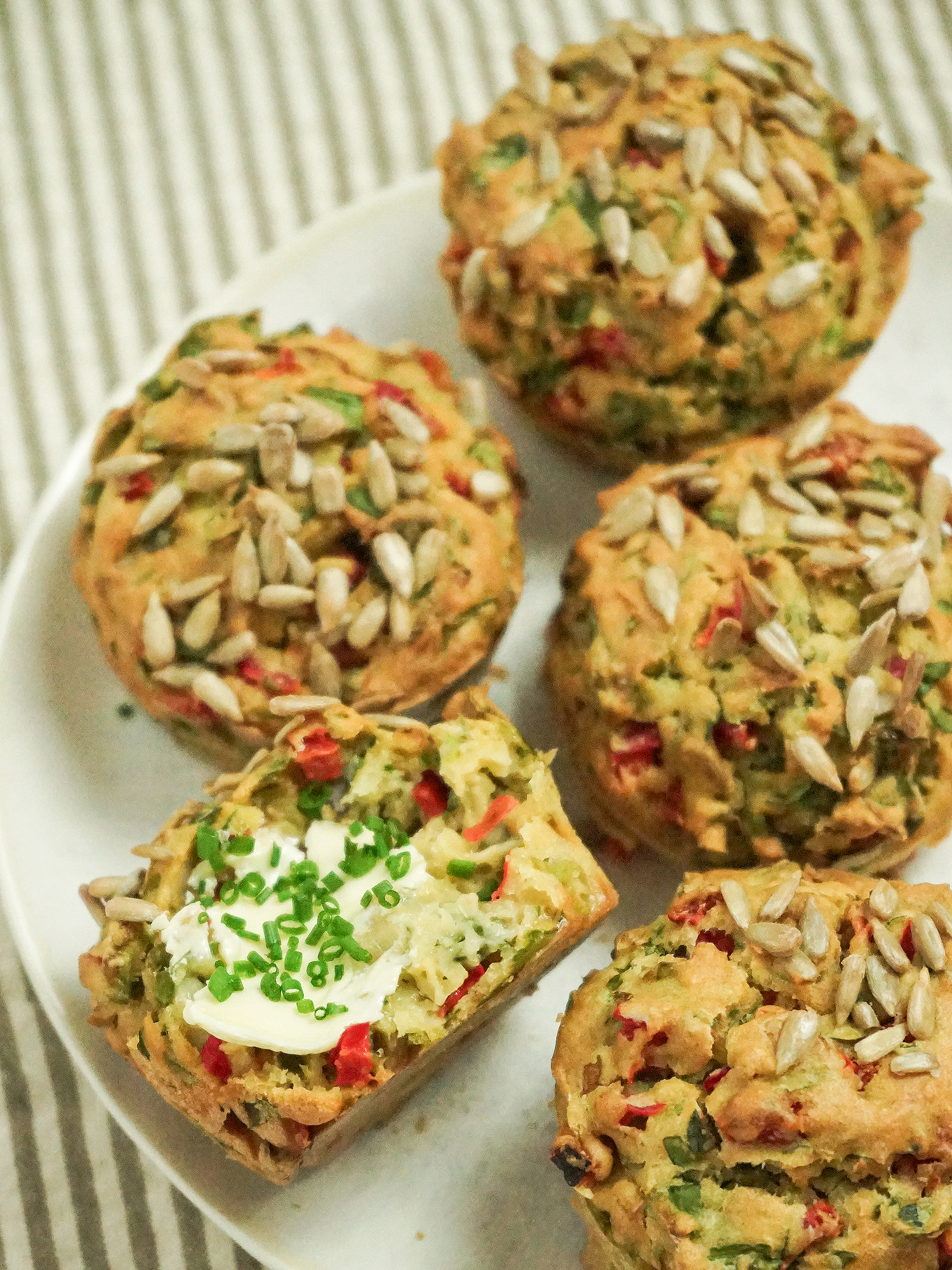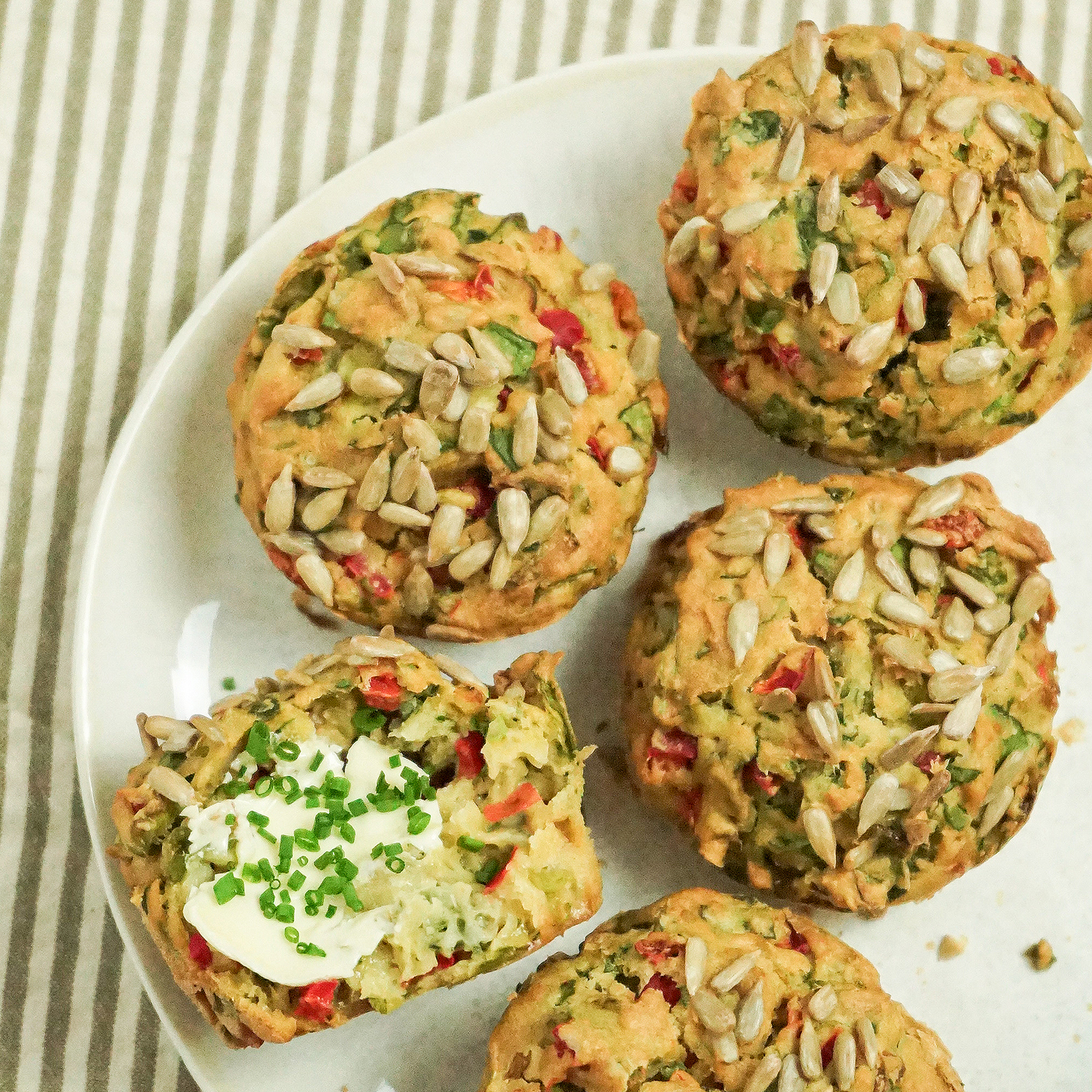 Tyhle slané muffiny jsou ideální snídaně do ruky, na brunch i do krabičky. Jsou plné zeleniny, krásně vláčné a jemně křupavé díky slunečnicovým semínkům. Připravíte je jednoduše v jedné míse a vydrží skvělé i další den (nebo dva 🫢).
